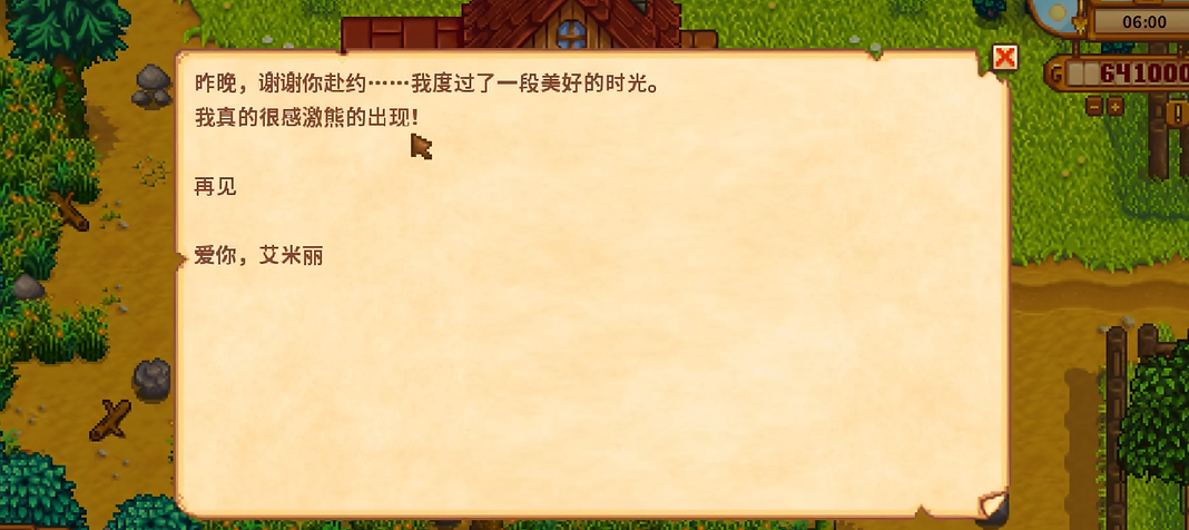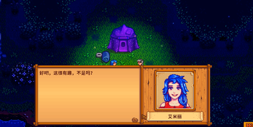 6心事件会展示艾米丽的秘密爱好——舞蹈。玩家需在她家中触发这段剧情,她会为玩家表演一段即兴舞蹈,结束后询问玩家的评价。8心事件则围绕服装疗法展开,玩家收到邀请前往镇长庄园,与其他村民共同参与换装活动。克林特的介入会让剧情出现波折。10心事件是浪漫的森林约会,玩家需在晴天晚上10点后进入秘密森林,与艾米丽共同应对突发状况。