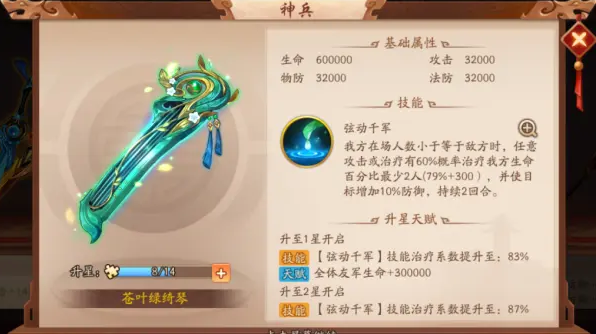 输出型武将推荐诸葛连弩丈八蛇矛等高伤害神兵,治疗型角色则选择苍叶绿绮琴提升回复效果。装备强化顺序应优先主力输出,其次为关键控制或辅助角色。神兵铸灵阶段需集中资源激活金色神兵的木灵属性,以快速提升战力。注意避免分散培养,确保核心武将的装备强度领先。
