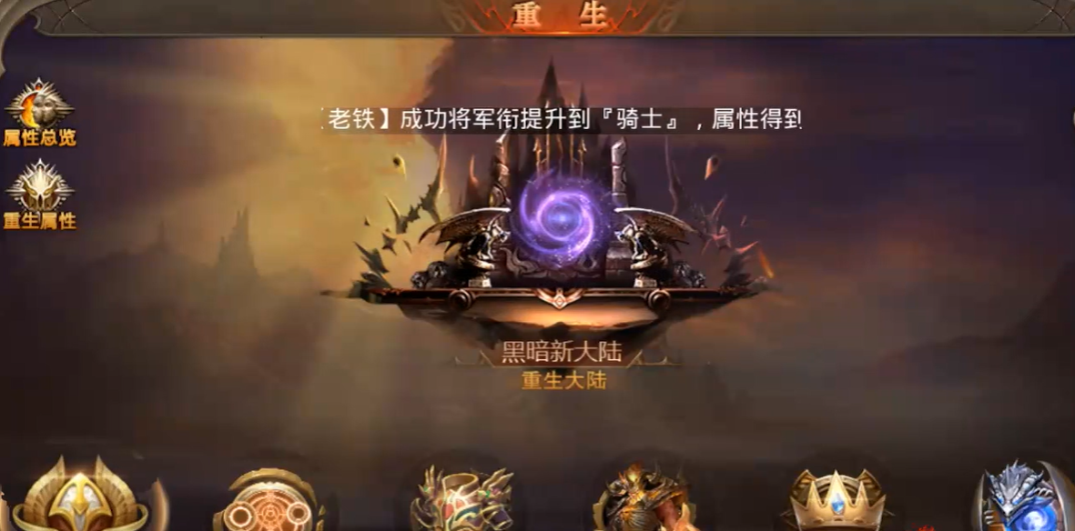 建议把背包清出至少8格空间,因为首次重生会直接发放重生印记点数、职业专属属性加成和重生装备。选择重生后会被传送到魔龙之岛,这里的怪物会掉落圣纹晶石和龙魂碎片,前者用来激活重生装备属性,后者可以在重生商店兑换稀有坐骑皮肤。