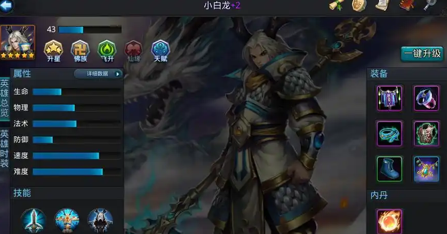 小白龙的核心定位,这是个能在人形态和龙形态之间切换的英雄,两种形态技能不共享冷却,相当于有6个技能可以灵活使用。人形态主打物理伤害,适合突进和控制;龙形态则是法术伤害为主,群体输出和控场能力更强。根据这个特点,装备选择要以增强生存和技能循环为主。