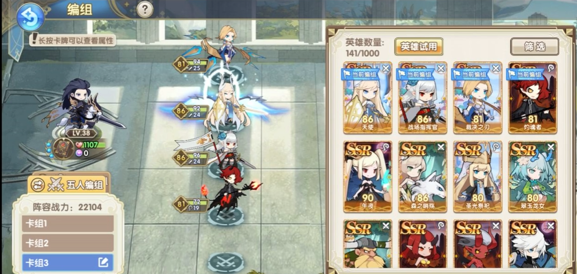平民玩家推荐的核心阵容为裁决之刃、天使、战场指挥官、灼魂者搭配SR级输出位(如帝国长弓或森之哨殇)。该组合兼顾治疗、防御与输出,天使提供群体治疗和神圣伤害转化,灼魂者负责单体急救和迅捷增益,裁决之刃与战场指挥官构成攻防兼备的前排体系,SR级输出卡则确保资源分配合理性。该阵容通过帝国与战斗系羁绊叠加攻击加成,形成稳定推图能力。