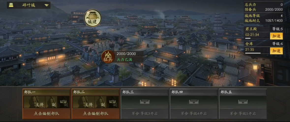 分城建设完成后,优先升级4级君王殿以解锁基础功能,随后集中资源提升伐木场、采石处等资源建筑至20级,铜钱建筑建议同步升级以保障武将招募与战法强化需求。军事型分城应侧重兵营、校场建设,经济型分城则需提升市场、农场等级。注意分城部队与主城不互通,但可额外提供3支队伍编制上限,用于屯田、铺路或协防。分城城墙自带防御加成,在战略要地可发挥屏障作用。