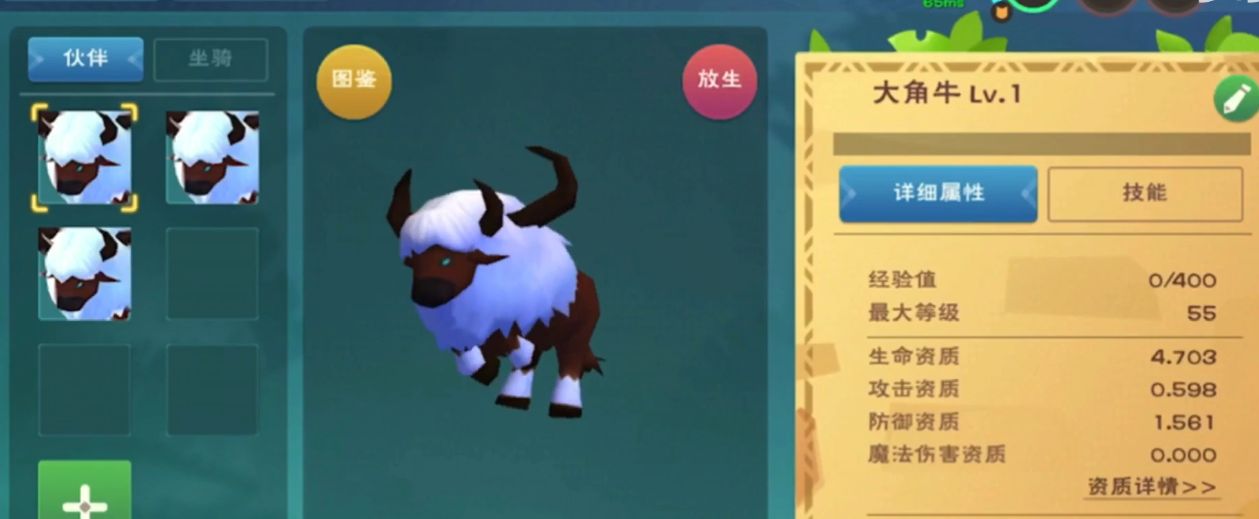 捕捉大角牛时,建议先使用武器将其血量削减至四分之一左右,再用木棒敲晕。需大角牛的攻击力虽然不高,但若同时遭遇多只,仍可能对低等级玩家造成威胁。建议携带一定的防御装备或组队前往。成功捕捉后,大角牛可作为坐骑或宠物使用,其技能挑衅能吸引怪物仇恨,在团队副本或PVE场景中具有一定战术价值。