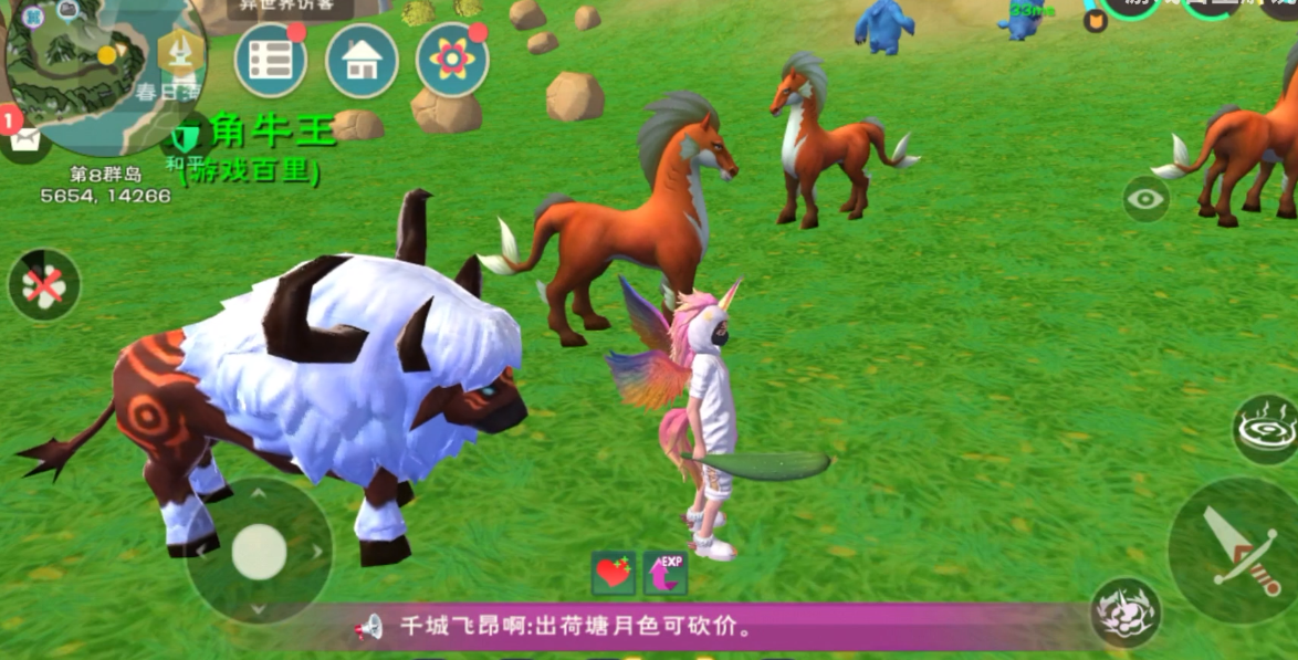 大角牛是创造与魔法中一种可捕捉的坐骑或宠物,主要分布在春日海岸西侧的小岛和银月丘陵附近的仙女湖区域。其初始资质为生命80、攻击6、防御13,坐骑资质速度为6500-7000,负重30-35,属于45级可捕捉的生物。捕捉大角牛需要准备16包饲料,配方为小麦饲料包+白莲饲料包+稀有肉。击杀大角牛后会掉落稀有肉,这也是游戏中刷取稀有肉的主要来源之一。