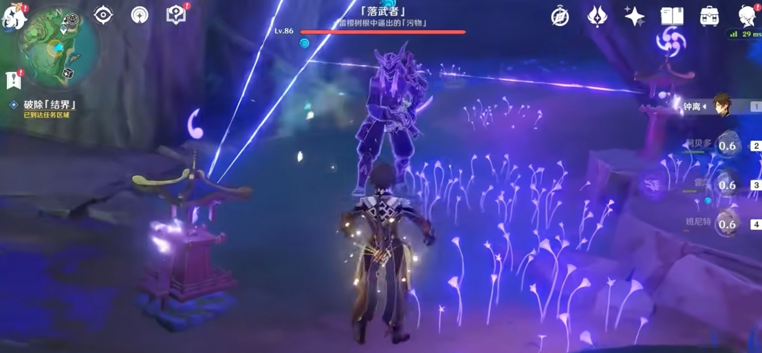 破除结界过程中可能遇到落武者等敌人,需提前准备战斗。击败敌人后与花散里对话即可完成任务。需注意小狸子伪装术会通过元素视野识别,白色高亮物体即为目标。若寻找困难,可优先清理周边丘丘人等干扰敌人。镇守之森结界的祝祷顺序通常为1-2-3-4,具体需以实际图案为准。