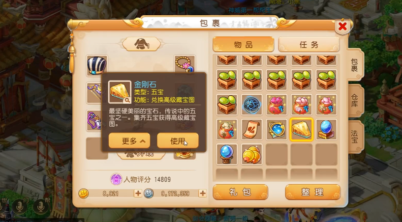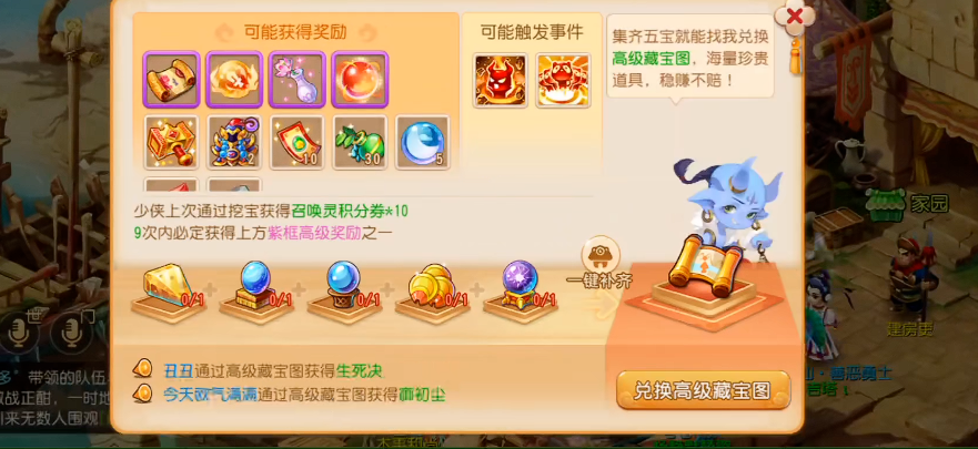 五宝是极为珍贵的资源,包括金刚石、定魂珠、龙鳞、夜光珠和避水珠五种道具。集齐一套五宝后,可前往傲来渔港的偷偷怪处兑换高级藏宝图,这是五宝最核心的用途。高级藏宝图能挖出高级魔兽要诀、稀有内丹等高价值物品,但挖宝结果存在随机性,需理性看待收益与风险。