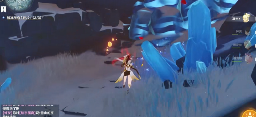 最终阶段的3个冰深渊法师会同步施放冰牢和暴风雪,优先击杀其中一只以降低控场压力。火属性角色破盾效率最高,破盾后立即切换主输出角色进行爆发。若队伍中有聚怪角色如温迪或砂糖,可在开场时将法师聚集至水边,利用水元素扩散快速破除多层护盾。