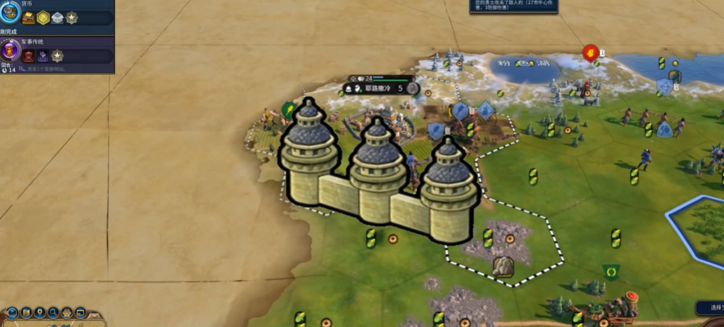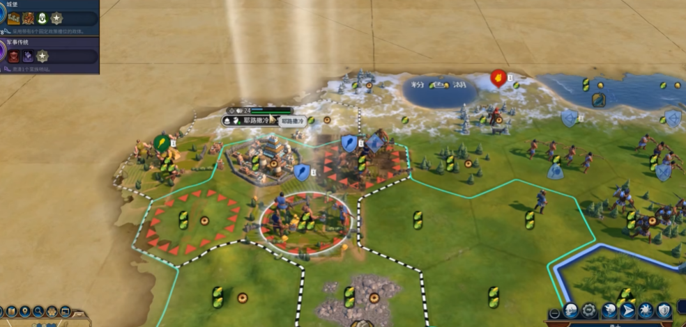 围城战术在后期同样重要,需要至少六个近战单位控制城市周边所有地块,阻止城市每回合自动回复生命值。山脉和海洋地块需要特殊处理,前者自动计入控制范围,后者需海军单位驻守。攻城时应优先劫掠城市周边区域设施,每个被破坏的区域能降低2点城市防御力。市中心驻扎的军事单位也会提供防御加成,可通过诱敌战术将其引出消灭。
