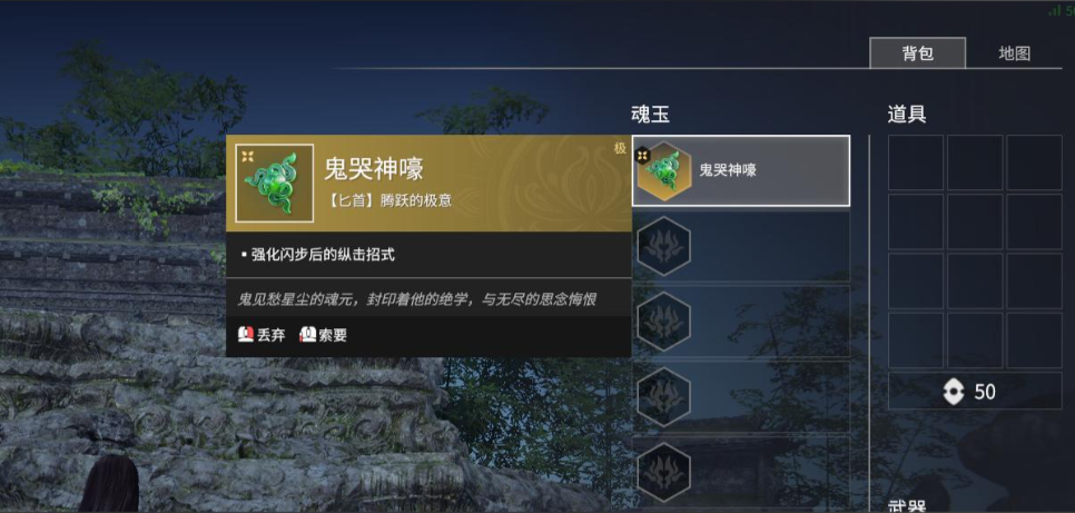 鬼哭神嚎·匕首是改变二段蓄力的关键魂玉,将原本招式变为范围连续斩击,前三道攻击为蓝霸体可被振刀,后续转为紫霸体提升压制力。鬼刃暗扎·匕首则强化一段蓄力,甩出匕首后接突刺攻击,虽增加攻击距离但蓝霸体特性需谨慎使用。荆轲献匕·匕首优化闪步攻击,突刺距离延长且僵直时间增加,适合衔接升龙等连招。幽冥步·匕首提供连续两次闪步的能力,显著提升机动性,但需注意前后摇调整带来的操作节奏变化。