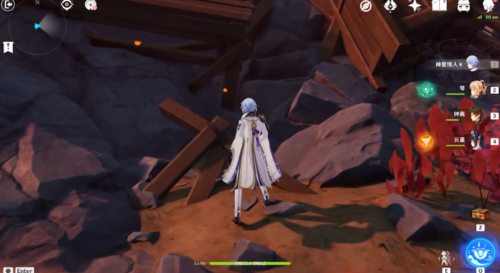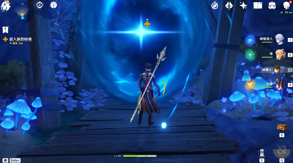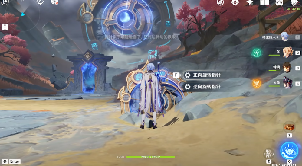 刚进入秘境时会触发剧情对话,结束后需要用烟绯击败6个盗宝团成员。战斗结束后记得往后方的斜坡走,那里有两个炸药桶一定要打掉,这可是隐藏宝箱的关键。接着靠近仪盘用普攻击碎旁边的树枝,然后正向转动仪盘一次让指针指向召的位置,这时候会出现传送门,勇敢地走进去吧!