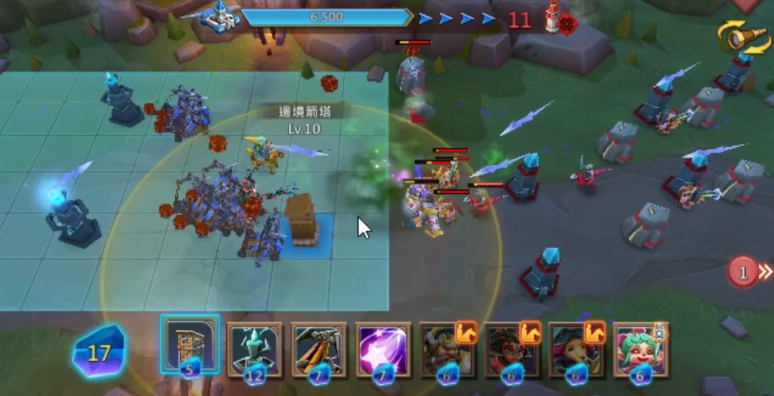 最终阶段需调整策略应对敌方增援,通过炮车清理残余炮塔,魔像塔提供前排掩护。特别注意避免步兵单位过度冲锋导致被炮塔集火,保持阵型紧凑性。若使用克制英雄的步兵单位,需配合炮车进行定点清除。法力值管理始终是胜负关键,建议采用阶段性补充防御设施的节奏,而非一次性耗尽资源。重复挑战时可尝试替换部分卡牌,例如将火焰巨人替换为黑炎法术提高清兵效率,或增加冰霜塔延缓敌方攻势。所有战术需建立在对敌方炮塔攻击范围和英雄特性的准确认知基础上。