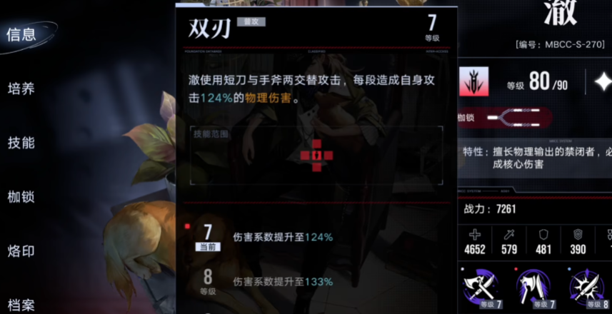 除了破核这一核心职责,澈还具备优秀的辅助增伤能力。他的被动技能短刀小杰使得他用短刀攻击带有标记的敌人时,能不断提升敌人所承受的伤害,最高可叠加至一个相当可观的比率。这意味着澈在完成破核控制的同时,还能持续为敌人挂上易伤效果,变相地大幅提升了全队的输出效率。另一个被动斧头阿强则让他在用手斧攻击时有概率回复能量,这优化了他的技能循环,让他能够更频繁地释放必杀进行破核与控制,形成了良性的技能闭环。