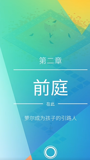 完成最初的教学引导后,游戏会自然地推进至名为前庭的第二章。主人公萝尔将与她的孩子一同登场,你们的双人解谜之旅便正式开始了。画面中会出现一个黄色的机关按钮,操控角色走上去触发它,新的道路和场景便会随之展开。你需要适应同时引导两位角色移动,并观察场景中可旋转的机关部件,这是通往后续关卡的核心操作。