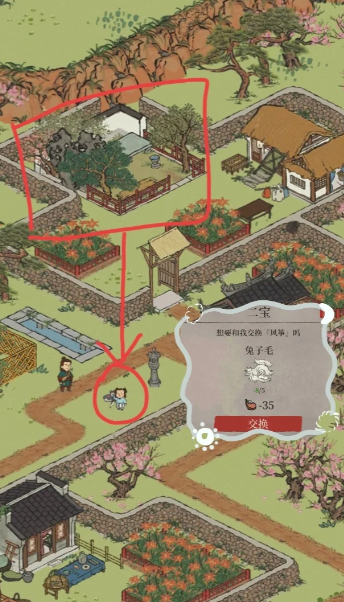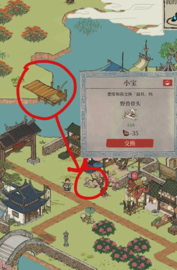 除了寻找大宝,玩家也可能在该区域附近遇到其他提供不同交互内容的角色。收集不同的材料可以与二宝换取风筝,或与小宝等进行其他类型的交换。在探索该区域时,建议玩家提前储备一些常见的探险材料,如野兽骨头、兔子毛以及通过钓鱼台获取的青鱼和鲤鱼等,以便能够应对多种交互机会。