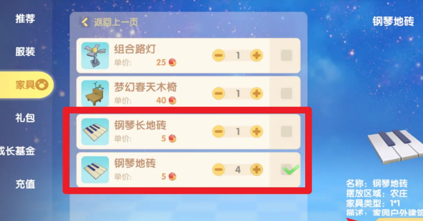 捣鼓钢琴和地砖,这确实是打造梦幻家园的一个热门玩法。首先咱们得搞清楚钢琴地砖具体指的是什么。它其实是一种装饰性地板,全名就叫钢琴地砖,你可以在游戏商城里直接找到它。进入商城后,点击家具分类,在里面翻找简约地板组合,就能看到钢琴地砖了,每块的价格是5个金豆,购买后就可以在你的家园仓库里使用它。这种地砖通常用来铺设地面,营造特定的音乐主题氛围,是基础装修的一部分。除了直接购买,有些特殊的地砖也可能通过游戏内的其他活动或方式获得,不过当前最稳定直接的获取途径就是商城购买。了解这个基础道具是进行后续创意搭建的第一步。