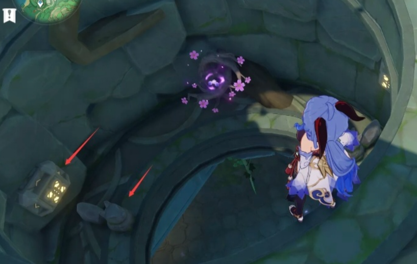 来到荒海雷门附近的地面后,你的首要目标是激活四个雷元素方碑来解开初始封印。第一个雷柱就在中间大树左侧,攻击即可点亮。接着转身,去攻击身后山坡上的第二个雷柱子。然后朝左侧的樱花树方向走,找到并攻击第三个雷柱子。第四个雷柱的解锁方式略有不同,它关联着一个樱花石柱机关,你需要调整三个石柱,让所有柱子上雕刻的樱花图案都朝向同一个方向,通常是正前方,完成这个图案朝向解密后,第四个雷元素方碑就会解除封印,此时将其点亮即可。