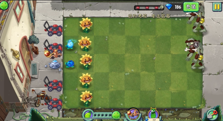 面对进阶考核,开局运营和植物选择是基石。阳光是部署一切防线的基础资源,因此开局应优先建立稳定的经济体系,例如快速种植向日葵并尽快将其升级为双子向日葵,以保障后期的植物购买和阵容补充。在植物选择上,不能只依赖单一种类,必须构建一个功能全面的防线。考核通常会提供或限定部分植物,你需要在此基础上,选择攻击力强的植物作为输出核心,同时搭配坚果类植物进行有效阻挡,并根据僵尸类型加入控制或辅助类植物,例如用寒冰射手减速或用杨桃穿透攻击。