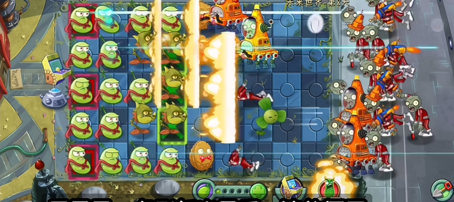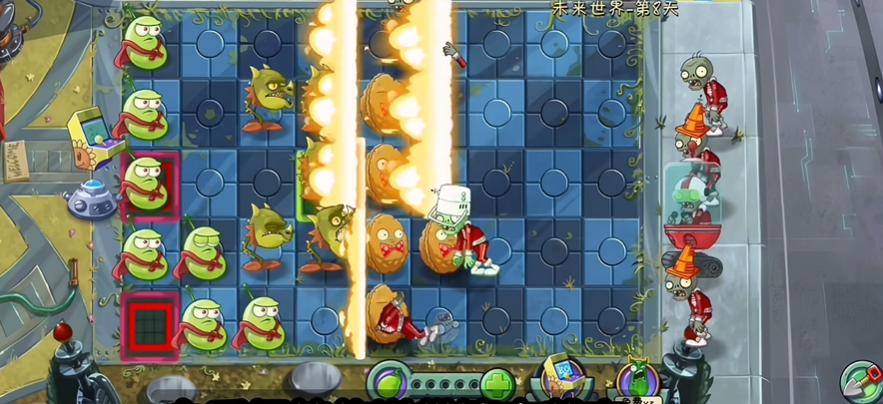 这一关的难点在于僵尸的进攻节奏比较快,尤其是飞行僵尸和机器僵尸的组合。如果发现前排压力太大,可以适当用菜问近战补刀,或者用瓷砖萝卜强化植物的攻击范围。能量花记得及时种,确保阳光不会断档。别贪心一次性种太多高级植物,稳扎稳打才是王道。