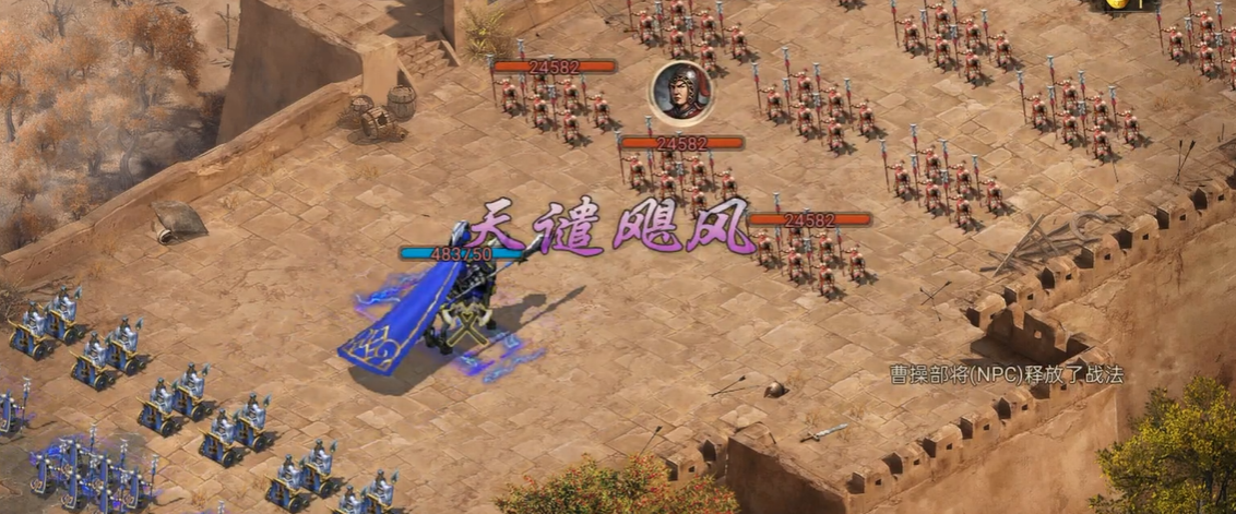 低配置玩家可通过调整珍宝和御宝提升容错率,例如优先选择增加兵力或防御属性的宝物。若无法一次性通关,可尝试分阶段消耗敌方兵力,首次以削弱为主,第二次集中输出。副本中的NPC携带方圆阵和血盾效果,因此需确保武将攻击力足够击破护甲。若使用驱虎曹操,注意其罩子技能的覆盖范围,优先保护核心输出武将。