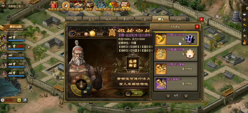 炼宝炉是用于铸造御赐宝物的核心功能,开启后可通过炼宝聚宝夺宝三种操作消耗元宝获取稀有物品。每次炼宝会随机产出道具并赠送铜钱,同时积累炼宝币用于商店兑换。商店物品需用元宝刷新,建议优先兑换高价值材料。炼宝炉的铸造效率与王朝等级直接相关,五级王朝可升级为中级炼宝炉,缩短铸造时间但效果有限。
