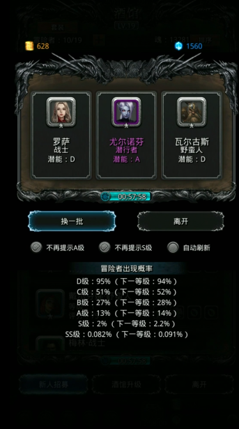 前期别太执着于SS英雄,B级和A级足够推图用。先把资源投在酒馆和工坊升级上,等中后期金币充裕了再慢慢囤SS。如果酒馆还没满级,可以每小时只刷3次试试手气,既省金币又能碰运气。记得英雄栏位尽量塞满,哪怕用D级英雄占位也行。与其纠结单次结果,不如规划好资源分配:木头优先升酒馆,钻石砸流水线,金币留作刷新备用。