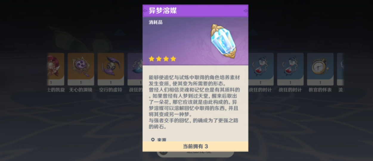 刀镡系列材料分为破旧、影打、名刀三个等级,通过击败野伏众与海乱鬼掉落。建议优先清理刃连岛、踏鞴砂等武士集中区域,野伏众刷新时间较短可反复刷取。天赋升级需风雅系列天赋书,每周二/五/日在堇色之庭秘境获取,同时需要血玉之枝作为周本材料,可通过击败若陀龙王或使用异梦溶媒转换获得。