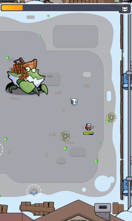 第63关的核心挑战在于应对BOSS63狗熊的双形态攻击机制。该BOSS拥有远程炮塔攻击和近战冲锋两种模式,远程攻击范围较大且附带溅射效果,需优先规避红色预警区域;近战阶段则需保持高频移动,利用场景中的障碍物阻断其直线冲锋路径。