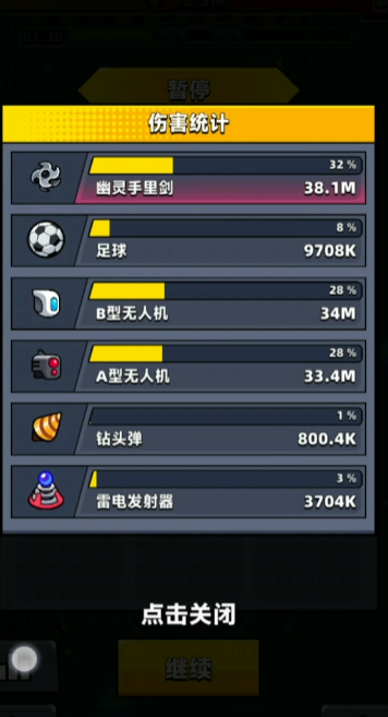 技能组合建议以幽灵手里剑+捍卫者为核心,苦无与经验卷轴合成的无限跟踪手里剑能稳定削減BOSS血量,守卫者与外骨骼装甲融合的捍卫者可阻挡60%弹道伤害。辅助技能选择雷电发射器与激光发射器,范围控制与爆发输出互补。被动技能必选攻击力提升与冷却缩减,确保技能循环流畅。