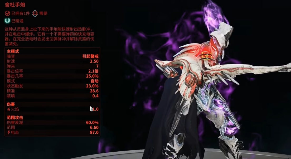舍杜是星际战甲中一种远程武器,属于阿姆菲斯瓦拉自动步枪类型,具备自动再装填能力,可发射强力的爆炸电磁脉冲。该武器以其高伤害输出和独特的充能机制受到玩家青睐。舍杜的完整制作需要收集四个部件:枪管、机体、握柄和枪机,这些部件均为独立掉落,需通过特定方式获取。
