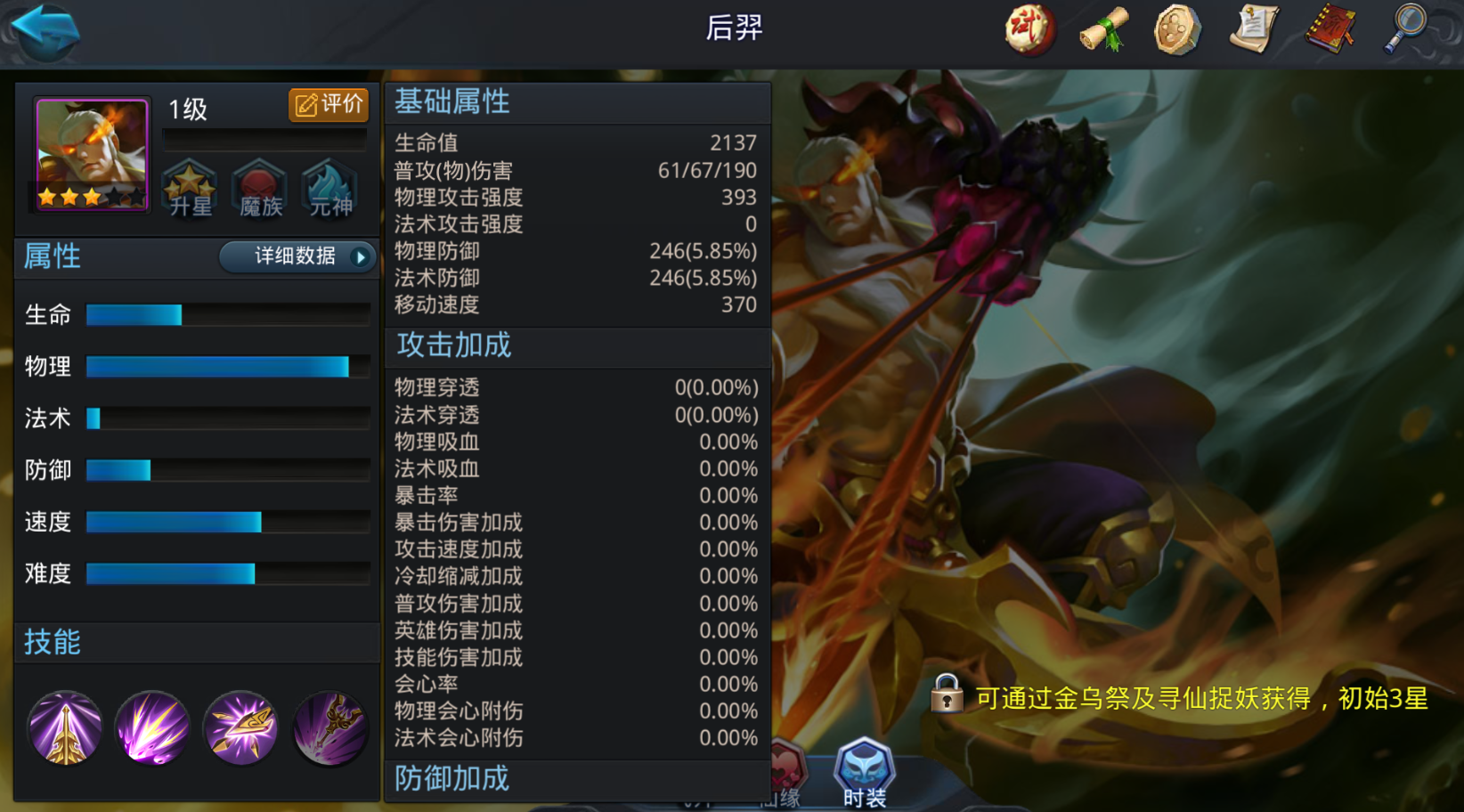 后羿作为乱斗西游中兼具爆发与持续输出的远程物理核心,其技能组围绕精准打击与攻速叠加构建战斗循环。逐日之矢作为核心标记技能,可对目标施加灼日印记持续5秒,该印记可被后续技能引爆造成额外真实伤害。九乌连珠的扇形范围射击能同时触发多目标定身效果,射日神威开启后形成的日曜领域可大幅提升攻速并强化普攻穿透效果。被动技能追猎赋予其优秀的战场转线能力,脱离战斗后移速提升配合普攻命中减速目标可叠加攻速。