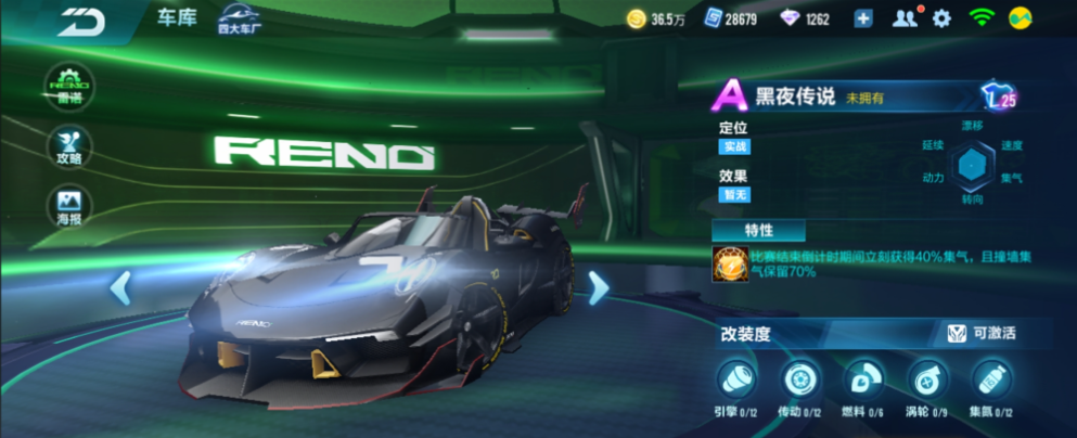 如果咱们更关注A车的表现,可以优先考虑黑夜传说、天启、帝王和雷诺。黑夜传说凭借帅气外形和均衡性能成为热门选择;天启的平跑转向能力极强,适合复杂赛道;帝王则以综合性能著称;而雷诺则是经典中的经典,耐撞且集气效率高,适合实战对抗。这些A车在满改后甚至能媲美部分S车,性价比很高。