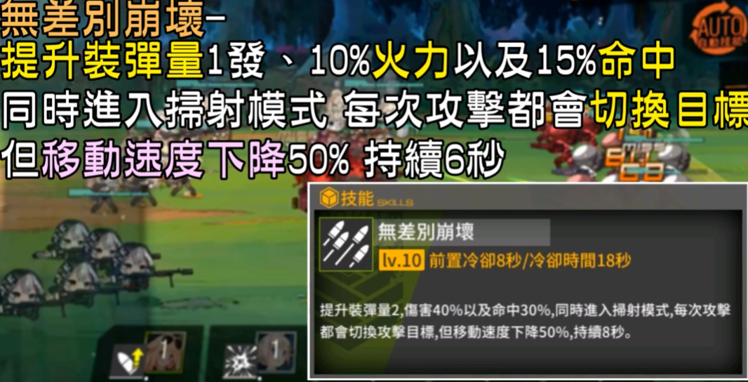 HK21作为五星机枪人形,在实战中表现相当亮眼,尤其是她的技能无差别崩坏能大幅提升装弹量和命中率,同时进入扫射模式。虽然移动速度会下降50%,但持续时间内输出能力非常可观。对于喜欢暴力输出的指挥官来说,HK21绝对值得投入资源培养。她的扫射模式可以快速切换目标,适合应对多敌人场景,尤其在清理杂兵时效率极高。
