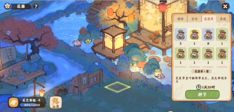 合成稀有的花菱草蓝,咱们得先准备好基础材料。花菱草的初始颜色只有红色和白色两种,需要通过育种才能获得其他颜色。浅粉色花菱草是合成蓝色的关键材料,可以用粉色+白色、红色+白色或蓝色+红色来培育浅粉色。记得在游乐-杂货铺用玥琅购买花种,40玥琅能买2袋花菱草种子,种在花圃里等开花就能获得基础颜色了。