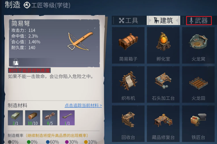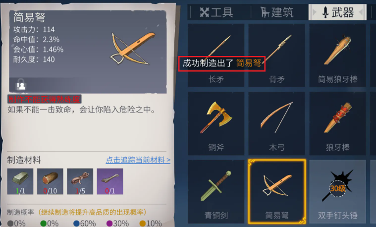 进阶使用需掌握装填节奏与位移同步技巧,简易弩的装填动作可借地形掩护完成。在资源采集场景如晨曦树林时,可先清除区域敌人再切换简易弩进行警戒。武器强化方面,优先提升攻击力和暴击属性,工匠等级40级后可通过分解重复装备获取强化材料。简易弩在后期会被更高级的远程武器替代,但在游戏前中期仍是性价比突出的选择。