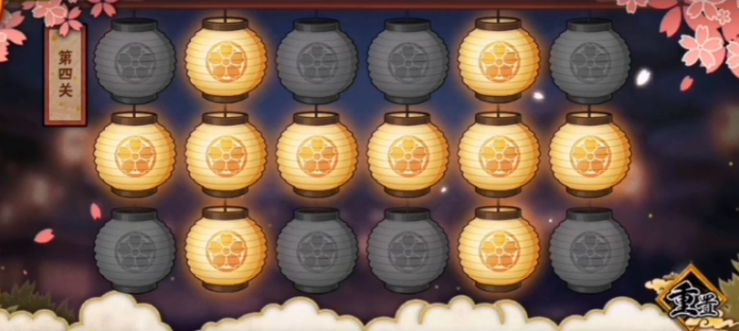 第四关采用环形布局,需按照顺时针或逆时针顺序依次点击外围花灯。建议从12点钟方向的灯开始,每隔90度点击一次,共操作4个关键节点。该关卡考验对连锁反应的理解,错误顺序会导致状态循环无法通关。若操作失误可通过重置功能重新开始。