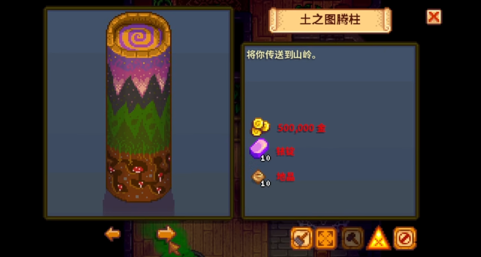 法师还提供两项特殊服务:时间回溯与隐藏剧情解锁。时间回溯功能允许玩家重置当前游戏日,适用于纠正操作失误或重新规划日程;而隐藏剧情需通过提升与法师的好感度触发,每周可赠送两次礼物,推荐优先选择太阳精华、虚空精华或紫星果等偏好物品。好感度达到4星后可进入法师塔地下室,使用幻觉神龛自定义角色外观。法师的商品和服务与游戏进程深度绑定。例如黑暗护身符需在突变虫穴获取,魔法墨水需从女巫小屋取得。