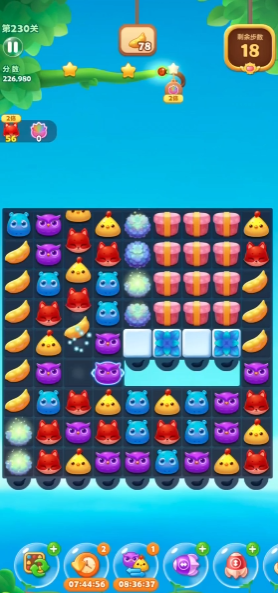 别光想着三个三个地消,那样太慢,步数肯定不够用。看到有机会凑四个连成一条线,就赶紧做成一个直线特效,如果看到有T形或L形的消除机会,就能做出一个爆炸包,它的消除范围可比直线大多了。最厉害的当然是两个魔力鸟挨在一起,如果能凑成一对魔力鸟组合,交换一下,那整个屏幕的动物都会被打乱重排,清场效果是最好的,很容易就拿高分过关了。所以你在玩的时候,要多留意动物的排列,心里得有个做特效的念头,主动去创造这样的机会,而不是被动地等机会出现。到了游戏中后期,步数可能不多了,冰块也还剩一些,这时候心态要稳,不能乱。要集中火力去攻击那些冰块最密集的区域,看看能不能用一个特效同时打到好几个冰块。如果场面上有之前做好的特效,比如爆炸包或者魔力鸟,要好好利用它们,最好能让它们和其他特效或者普通消除产生连锁反应,这样一次操作就能带来好几步的效果,非常划算。
