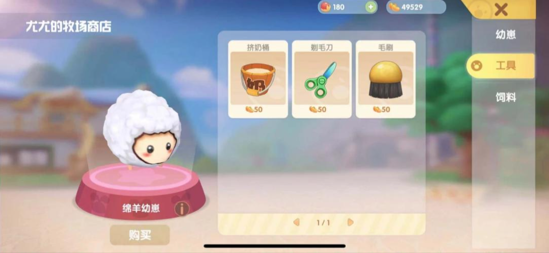 获得绵羊是从购买幼崽开始的,你得确保自己的农夫等级已经达到26级,这样才能解锁购买资格。然后去游戏主界面的店铺里,找到尤尤的牧场商店,在幼崽分类中就能看到绵羊幼崽了,每只的价格是300摩尔豆。买回来之后,要把幼崽放在牧场的小屋里饲养。它的成长时间固定是8个小时,在这段时间里你得记得按时给它喂食物和水,新鲜的牧草就很不错,可以从商店买也能自己收割。只要照顾得当,8小时后它就会变成一只成年绵羊,这时候才具备出售的条件。