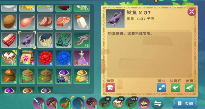 鲶鱼在饲料合成中扮演关键角色,特别是用于制作水龟饲料。玩家需要将鲶鱼与三文鱼组合在烹饪锅中,即可生成水龟饲料,保底数量为13包。这种饲料是驯服水龟的必备物品,水龟作为一种实用坐骑,能提升玩家在水域中的移动效率,因此鲶鱼在此处的应用直接关联到游戏中的交通和探索能力。收集足够的鲶鱼来制作饲料,可以加速玩家获取水龟这一有价值生物的过程。