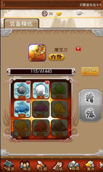 下阵操作需结合阵容养成逻辑合理规划,被换下的英雄可转入后备队列,用于侠缘羁绊激活、奇门遁甲属性加成或后续轮换出战,避免资源浪费。部分高星级英雄下阵后可进行传功、突破等养成操作,传功功能要求目标弟子处于非上阵状态,提前下阵能顺利完成经验与属性转移,提升核心弟子战力。在血战、江湖闯关等高难度玩法中,灵活下阵替换英雄可针对性应对敌方阵容,前排坦克承伤不足时换下防御型弟子,换上更高坦度角色,后排输出疲软时更换强力侠客,快速调整阵容适配不同战斗场景,提升通关效率与论剑排名。