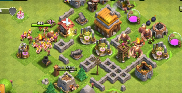 进攻时需先侦查敌方阵型与援军配置,低本阶段优先选择野蛮人、弓箭手、哥布林组合,比例控制在2:1:1,野蛮人前排抗伤,弓箭手清理外围建筑,哥布林专攻资源库,法术搭配治疗与狂暴,应对密集防御时用狂暴提升输出,部队残血时及时释放治疗续航。中高本阶段可选用天女矿猪流,以4天使配合女王清边,搭配矿工与野猪骑士为主力,辅以攻城机器与大守护者,遇到单头地狱塔用气球点杀,多头地狱塔则用冰冻法术控制,同时提前用小龙或野蛮人切断侧翼,避免主力部队偏离路线。龙球流适合空中强势的玩家,10火龙搭配4气球与4雷电法术,先用电击清除防空火箭,再让火龙集群推进,熔岩猎犬承担防空伤害,气球兵跟进摧毁核心防御,全程把控法术释放时机,确保输出与生存平衡。