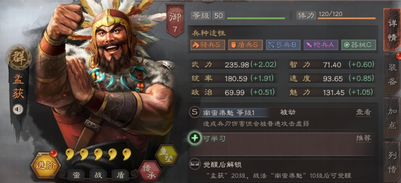 破阵摧坚与轻勇飞燕是平民优选组合,破阵摧坚可对敌军两人造成伤害并降低统率、智力,削弱敌方防御的同时为自身输出铺路,轻勇飞燕发动率高、多段伤害,能稳定触发武力加成收益,适合缺少顶级战法的玩家。落凤与横扫千军也是优质备选,落凤可附加计穷控制,限制敌方主动战法,横扫千军能造成群体伤害并附带震慑,兼顾输出与控制,适配不同战场需求。于禁加点优先全武力,最大化输出,兵书选胜而益强、执锐、将威,提升会心与伤害,兵种选盾兵,搭配曹操、郭淮组成魏盾,靠曹操减伤、郭淮回血弥补易伤缺陷。