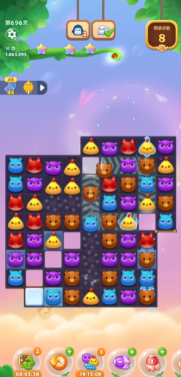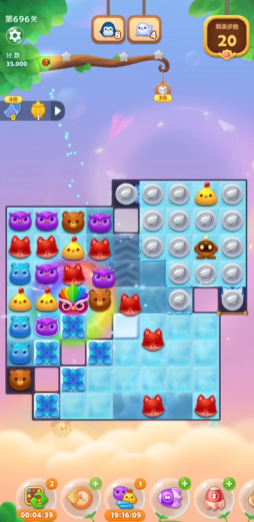 中期把控特效释放节奏,不要零散单独使用单个特效,深色毛球被特效击中后会分裂成浅色毛球,清理难度大幅降低,搭配火箭加炸弹、魔力鸟搭配直线特效的组合,一次性清空大片连片冰块与残留毛球,同步拉高累计得分,避开边角零散无效消除,每一步都围绕拓展冰块清理范围、叠加连锁分数展开,优先处理拐角难以触及的冰封格子,借助横向纵向火箭打通整片冰封区域,避免后期剩余少量冰块浪费珍贵步数。